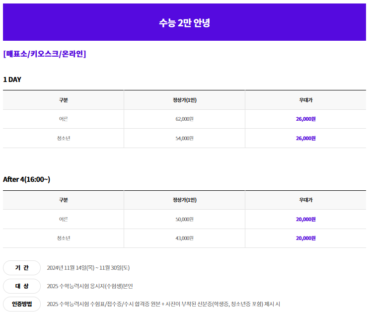 - 대상: 2025 수학능력시험 수험생 본인+동반 1인
