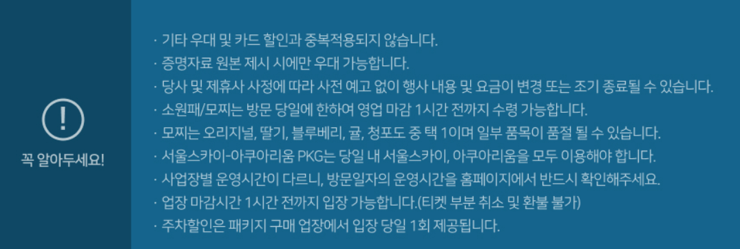 &아쿠아리움과 - 서울스카이 PKG 이용 시 29,000원으로 이용이 가능해요.